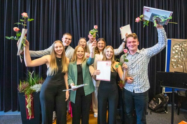 Geschäftsführer Andreas Pfläging zeigte sich dankbar dafür, dass die Stadt mit der stellvertretenden Bürgermeisterin eine Repräsentantin zur Feier entsandt hatte: „Das ist ein wichtiges Zeichen der Wertschätzung für unsere kleine Einrichtung.“ Auch die Gesellschafter des Katholischen Klinikums Ruhrgebiet Nord ließen ihre Grüße ausrichten. Pfläging dankte den Lehrkräften und Eltern, die die Prüflinge in der anstrengenden Prüfungszeit begleitet hätten.